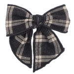 Este lazo de cuadros escoceses en tonos gris oscuro y beige combina la sobriedad de los colores neutros con un diseño clásico que nunca pasa de moda. El ribete a tono realza la estructura del lazo y lo convierte en un accesorio elegante y versátil. Perfecto para ocasiones especiales, celebraciones familiares o para dar un aire distinguido a los looks cotidianos. Elaborado en tejido resistente y con acabado artesanal, es un complemento pensado para bebés y niñas, adaptable a cualquier estación del año.